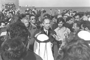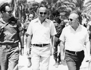 Mordechai Gur with Peres and Rabin during a tour of the Egyptian front during the six-day war in June 1967. Photograph: Keystone/Getty Images